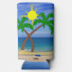 This fun can cooler features a photograph of the beach with a graphic illustration of sun and palm trees. Personalise with your own words or buy as shown with " the beach is my happy place"