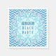 These pretty, personalised beach party paper napkins have a blue-and-white herringbone pattern. The bold shell motif has a classic Art Deco stylised look, complete with starfish and a faint white anchor in the middle. In a vintage 1920's font, easily add your name. Even the words "Beach Party" are customisable.