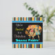 Each beach party invitation features two stylish women or teens in bikinis. The cartoon women also wear high heels. Behind the women is a sunset with a palm tree silhouette. The top and bottom half are decorated in neapolitan beach colours--- aqua, pool blue, sun yellow, orange, black and highlights of pink. Click on the design button above the beach party invite demo to see the vibrant colours. You can also click on the magnifying glass above the demo to see this design enlarged.