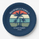 Beach Party Palm Tree Sunset Island Custom Blue Paper Plate