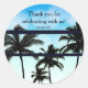 Beach Party Palm Trees Tropical Blue Party Favour Classic Round Sticker