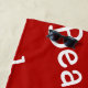 Fun simple beach theme towels in a typographic pattern that says the word Beach in casual letter pattern