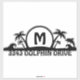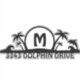 This personalised address mailbox sticker has a beach feel with palm trees, waves, and a dolphin. In order for this to print connected, when you change the address make sure not to move it so that it stays connected to the line.