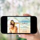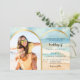 On front: Add your own vertical size photo. Watercolored beach and waves as background, black text. Personalise and add your names and details.