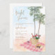 This fun bridal shower invitation features a beautiful watercolor beach picnic scene with palm trees, a pink plaid blanket and a picnic basket, perfect for a beach picnic celebration. The soft colours and intricate details make it a stunning addition to any bridal shower event. Get ready to have fun in the sun with the bride-to-be!