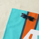 BEACH PLEASE! This cool, unique design features modern typography resembling the shape of a surfboard on a striped background. Use the design tool to change the stripe colours.