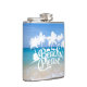 Well made flask, a little better than I had expected. Flask came in clear plastic box which gave it a nice presentation when I took it out of the zazzle packaging. Image is not printed on flask but on sticker. Don't know how this will hold up I haven't used it yet. This would make a Great gift! I plan to purchase more for friends! Cheers. I thought a little brighter than computer. Very crisp, writing wasn't