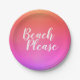 Beach Please Orange Pink Ombre Beach Paper Plate