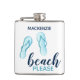 Beach Please Turquoise Flip Flips Personalised Hip Flask
