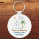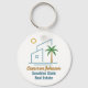 This cute tropical real estate company keychain features a modern blue beach house with a cool coastal palm tree and island sun. Customise this marketing item with your agent and realty business name for home buying clients along the coast.