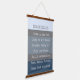 Wall tapestry features text on modern blues and greys colorblock background