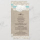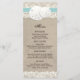 Beach Rustic Burlap Lace Menu Card - Turquoise