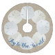 Big sand dollars custom Christmas tree skirt with wording across the front. Eight white sand dollars printed over "beach sand" image with blue shadow text in swirling script font. Change "Joy to the world" to "Merry Christmas" or "[family name] Christmas" any wording that fits the space. Please note that if text gets close to the edge it may be cut off in printing. Unique coastal themed holiday decor for under the tree.