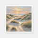 Watercolor footprints in beach sand dunes with pampas grass sunrise over the ocean