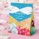 Waves on a sandy beach and sunbathers under colourful umbrellas, these ribbon closure tent style party favour boxes are fun for any summer occasion.