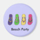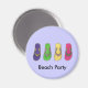 Graphic illustration of colourful beach sandals. Cool down in the summer heat with these sizzling sandals. You can customise background colour and message for any occasion. Great idea for save the date magnets.