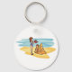 A child having fun building a beach sandcastle. This design looks really effective on this Keychain