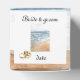 Lovely seascape with wedding rings decorates this favour box.  On top the names of the bride and groom as well as the date of the wedding are customised by you. Match with more products with this image in my store.