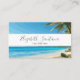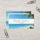 Bring a refreshing, tropical vibe to your professional image with this beach scene business card design. Featuring blue skies, white sands, crystal-clear blue water, and lush palm trees, the front includes a clean white stripe for your customisable name and title. The back showcases the same serene beachscape with a white square for your contact details—phone number, email, address, and website. Perfect for professionals who want a calm, relaxing, and inviting design.
