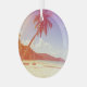 Beach scene, coconut tree, wooden bed. glass tree decoration