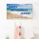 Happy Retirement or any occasion banner with a beautiful beach background with waves rolling in over the sand. All text is editable.