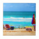 A Florida beach scene featuring a blue sky, ocean waves, beach sand, a colourful umbrella, colourful beach chairs, and two surfboards. This version has been done in a abstract painter theme. Great beach design for any seashore fan!© Susan L marsh