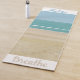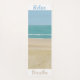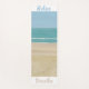 Relaxing beach scene of sand, ocean with gentle waves, and blue sky, is printed on custom yoga mats. The word Relax is printed in blue above the sky. The word Breathe is printed below the sand in beige. The design is printed on both sides. Thank you for shopping at CherylsArt on Zazzle.