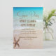 Beach scene and starfish surprise party invitations with instant download option. Celebrate an adult's birthday by sending out special beach themed invites. Sand brown text, in modern fonts, is printed over a turquoise sea with little waves lapping the shore. A single sea star, or starfish, is in the bottom corner. Printed cards come with many paper options to upgrade as you wish.