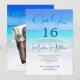 An enticing beach scene is the background for this Sweet Sixteen Beach Party birthday invitation.