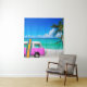Beach Scene with Fuchsia Pink Van and Surfboard Tapestry