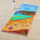 The personalised yoga mat features a colourful beach scene of sand and the ocean covered in beach goers.