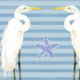Hand painted in watercolor artwork of a Great White Egret, Seahorse, Sea Turtle, Starfish and seashells are placed over a peaceful, crisp nautical blue and white striped background. Your family's name and message is easily personalized (or simply erase the text in the template form if you do not desire it). Art and graphic design by internationally licensed artist and designer, Audrey Jeanne Roberts ©