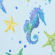 Dive into the depths of whimsy with our 12" LARGE Sand and Sea Sea Turtle, Seahorse and starfish with watery bubbles wallpaper collection. Featuring a charming ensemble of colourful starfish, over pale blue background, all beautifully painted in watercolor. Perfect for adding a playful touch to a child's bedroom or a coastal-inspired bathroom or living room. Audrey Jeanne's artwork is available for licensing through MHS Licensing.