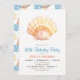 Nautical summer Beach Seashell birthday party invitation. Invite features blue, orange, and peach tropical seashells.