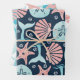 Nautical, beach theme wrapping paper features a pattern of a whale tail, sand dollar, starfish and scallop seashell on navy blue, aqua blue and white backgrounds. Perfect for beach, nautical, coastal and tropical themes. Original artwork KL Stock