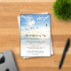 Funeral remembrance invitation featuring a heavenly beach, ocean, nature, seascape photo invite celebration of life template that is easy to personalise.
