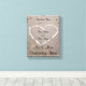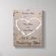 A sea shell heart on a sandy beach. Personalised with first names, last and wedding date.
