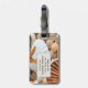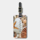 Luggage tag featuring a beach inspired design with shells and starfish. The text backgrounds are separate shapes and can be dragged, scaled (or deleted if you do not need them). You can also customise their colours and shapes, both on the front and back.