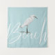 Tapestry With Beautiful Painted Snowy Egret Beach in Script Lettering. You are likely to see this beautiful Snowy Egret bird along the coast while out on a beach walk, near inland wetlands, and along the edges of rivers and lakes. Available in a variety of sizes. Design by Jenn's Emporium.