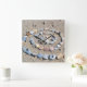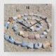 This wall clock features a spiral made of rocks found on the beach at Hammonasset State Park in Madison, Connecticut.
