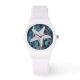 Beach Starfish Blue Rustic White Wristwatch is a beautiful beach design from a personal photo of a Florida starfish with a rustic blue wood plank background added. Customise if you'd like.