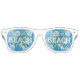 Party Sunglasses: Classic retro party shades with text "BEACH BEACH" and yellow sun drawing with ocean waves in background - fun fashion, grads beach party, secret Santa, office celebrations / night out