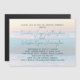 Sunrise wedding invitations with magnetic backing. Blue-green fonts with names in handwritten script. A light background of breaking waves and golden sky as the sun rises.