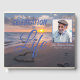 Add a favourite photo of your loved one, along with full name and life dates, to this beautiful "Celebration of Life" Guest Book designed around an amazing photo of sunset over the ocean with a heart drawn in the sand. On the back is room for a quote or Scripture especially meaningful to your late loved one. The text is in contrasting fonts in blue with the exact shade selected to contrast with the background.