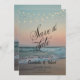 Beach with sunset, string lights, and script. Beautifully save the date that can be customised with your name.Select the "customise" button to change the font style,colour and size.