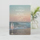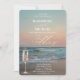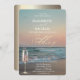 Beach Sunset,Waves,Champagne Glass Gold Wedding Invitation