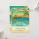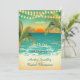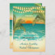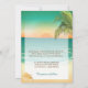 Palm trees and string lights frame the ocean sunset and sandy shore on this lovely beach wedding Invitation. Customise the modern, stylish text on front and back with your wedding information.