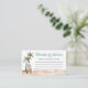 Cute surfing-themed baby shower enclosure card featuring a watercolor tropical beach scene with palm trees, sandy shores, and vibrant teal and brown surfboards and "Words Of Advice For The Mummy-To-Be" in a blend of a fun retro blue script and simple lettering.