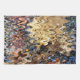 A colourful abstract design of seaweed ,sand and shells on the beach.