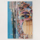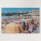 The original photograph by ZoeSPEAK on this Jigsaw Puzzle is a classic summertime scene in Biarritz, France, a popular holiday destination on the Bay of Biscay in the Basque country. In the high season,the beach is filled with people, and the Grande Plage is dressed with these iconic beach tents, striped in white with red, yellow, green or blue. The brightly coloured tents add to the holiday atmosphere along the esplanade, with a view of the lighthouse atop the cliffs, and the Hotel du Palais in the background.